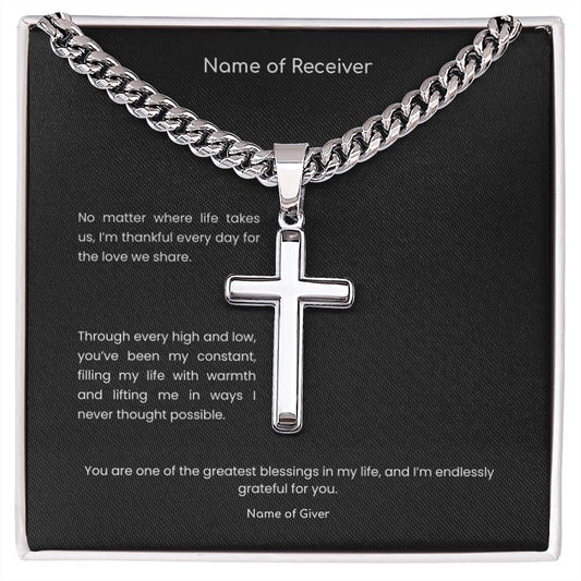 Cuban Link Cross Necklace with Message Card - for Men
