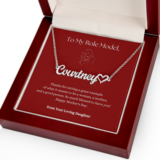 Custom Heart Name Necklace with Line Art Red Message Card - For Mothers