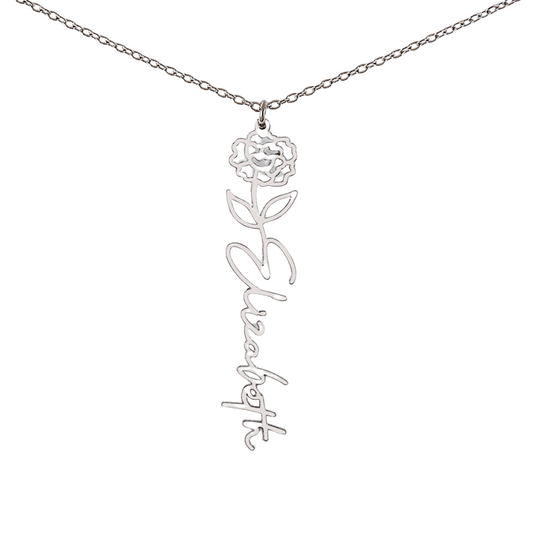 Custom Birth Flower Name Necklace - for Women