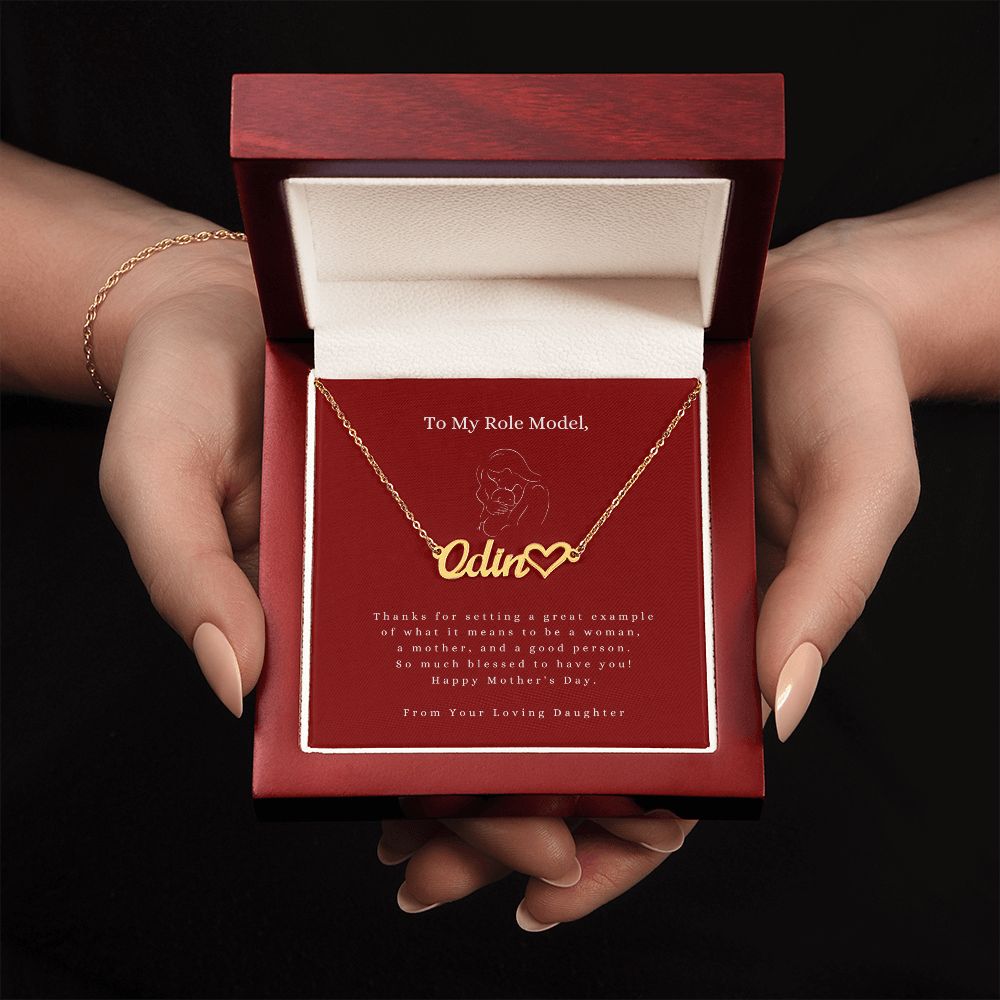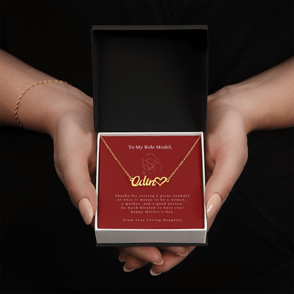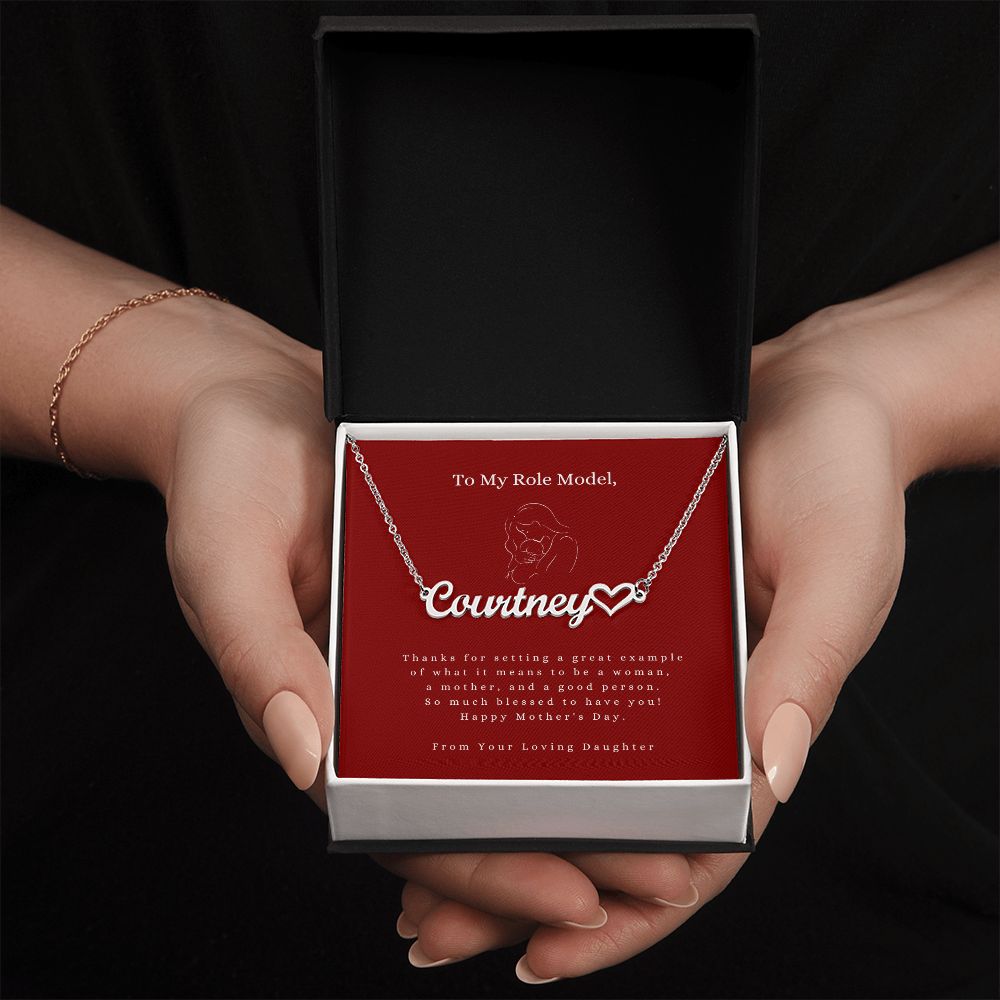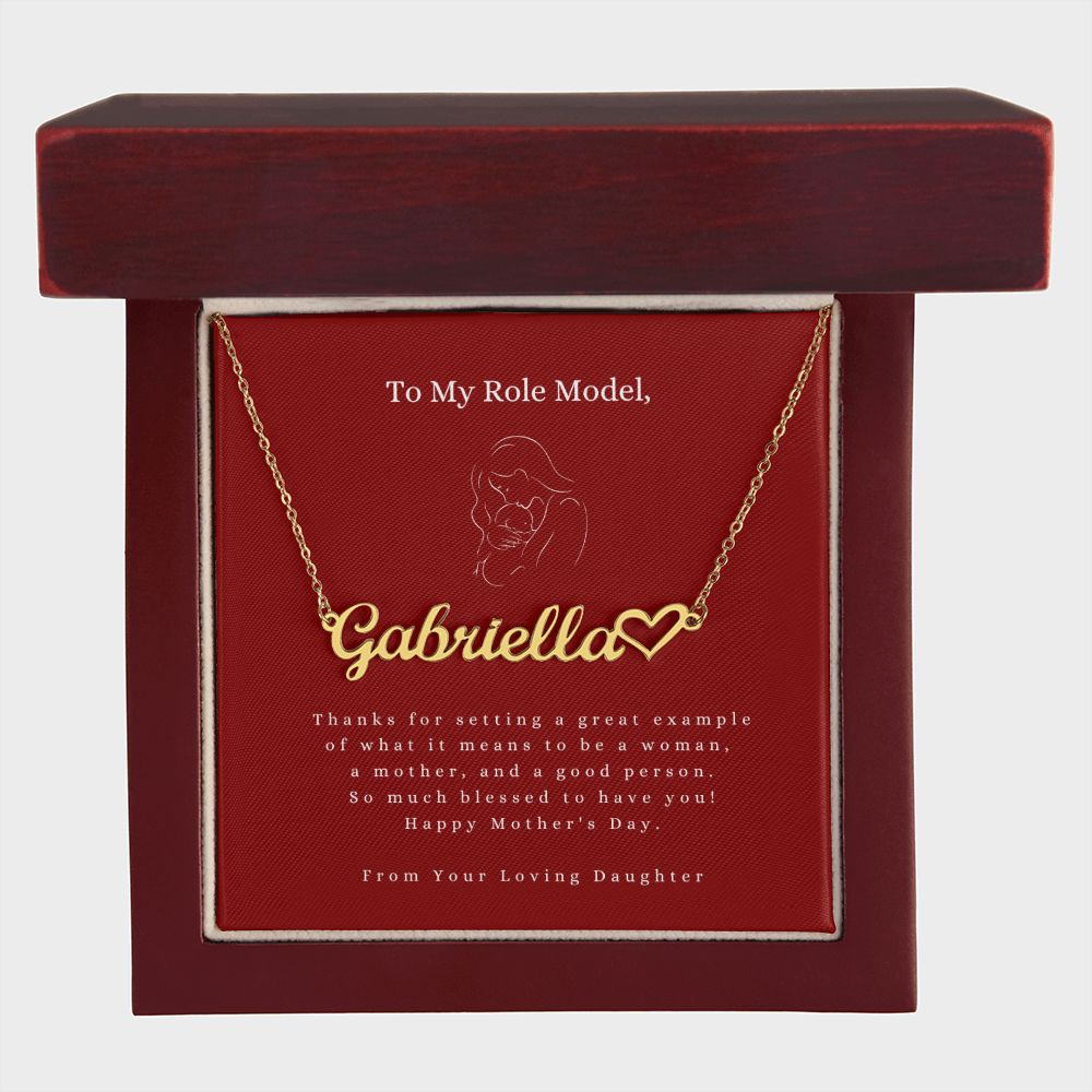 Custom Heart Name Necklace with Line Art Red Message Card - For Mothers