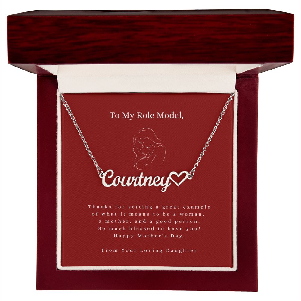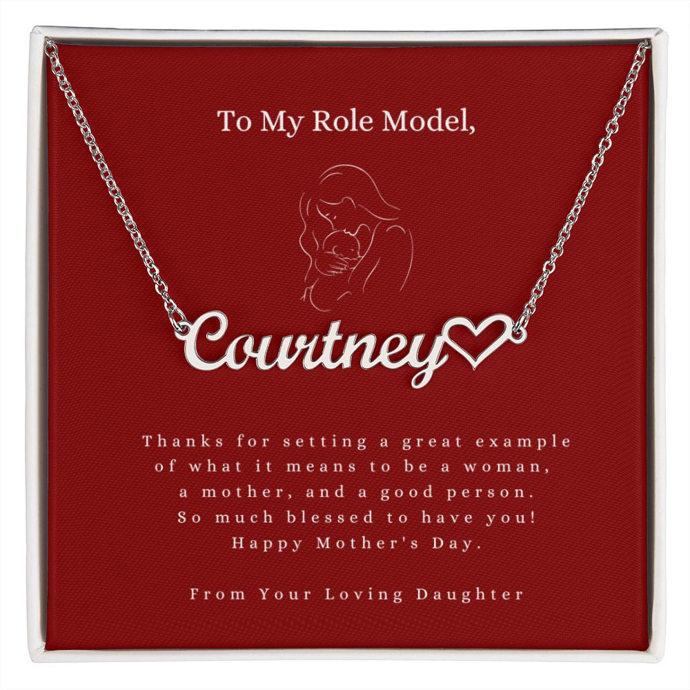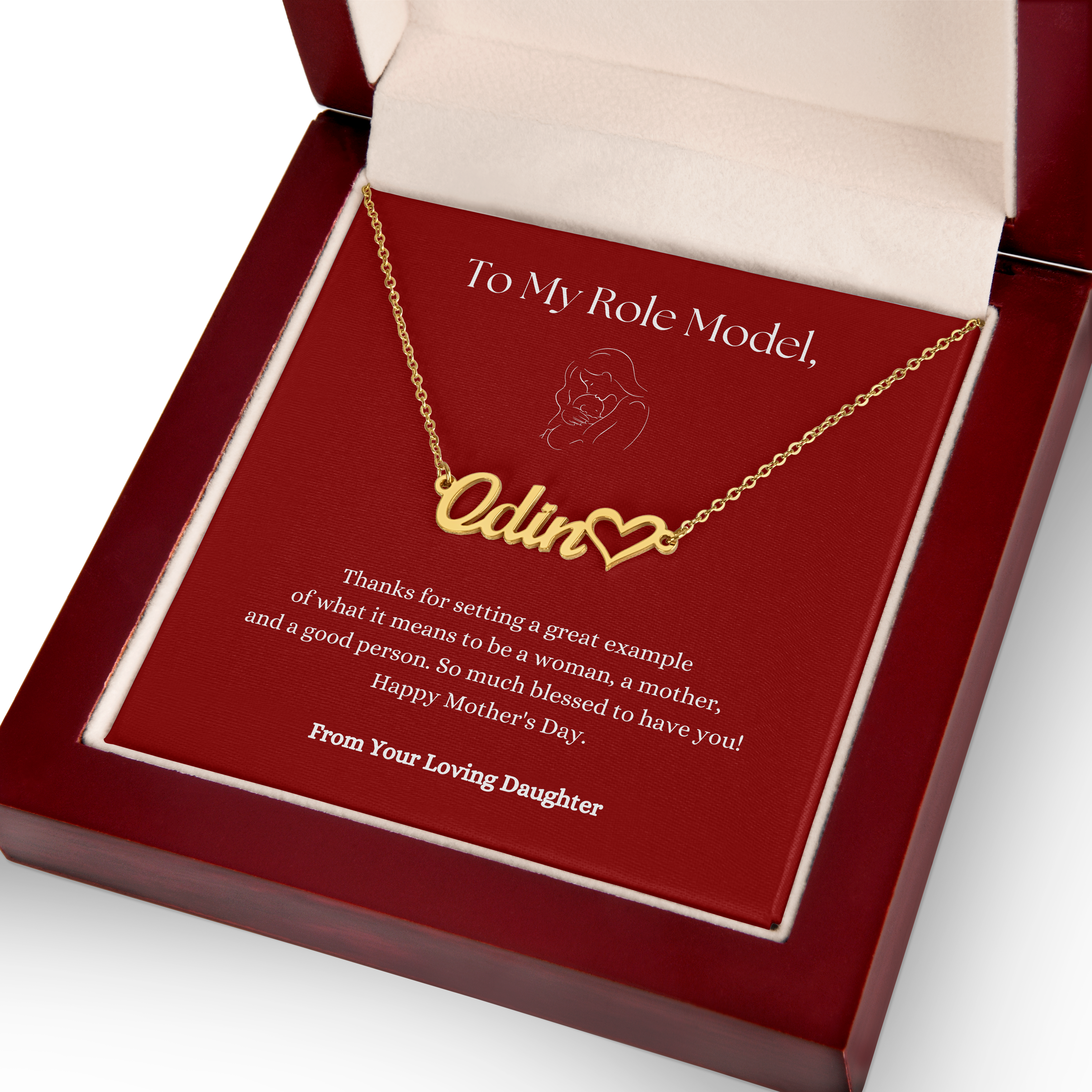 Custom Heart Name Necklace with Line Art Red Message Card - For Mothers